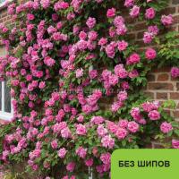 Эта красивая бурбонская роза - одна из самых известных плетистых роз, и это неудивительно: ее побеги практически лишены шипов, а яркие цветки с приятным ароматом делают ее любимицей многих садоводов. Удлиненные бутоны распускаются в полумахровые или махровые, рыхлые чашевидные цветки, 9-10 см в диаметре. Клубнично-розовые лепестки у основания белые, и оттеняются пучком золотых тычинок в центре. Появляются по одному или в небольших кистях (обычно по 3-5 шт.), в огромном количестве. Зацветает очень рано и цветет все лето, практически непрерывно, до поздней осени. Аромат сильный, сладкий. Куст довольно сильнорослый, с гладкими малиновыми стеблями, красным молодым приростом, и матовой зеленой листвой. Можно выращивать как шраб, невысокую плетистую розу, либо пустить по стене