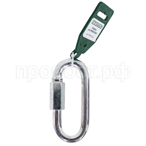 Карабин представляет собой звено овальной формы, фиксирующим элементом которого является накидная увеличенная гайка, которая закручивается и откручивается вдоль корпуса карабина. Сам корпус карабина выполнен из стальной проволоки круглого сечения.